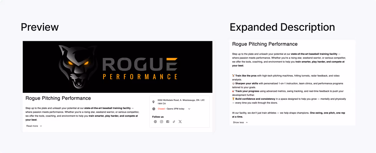 Now, you can write a short “Preview Text” to show just the key details upfront. Think of it like a tagline or teaser - something to catch the eye. When a client clicks in, they’ll still see the full description.