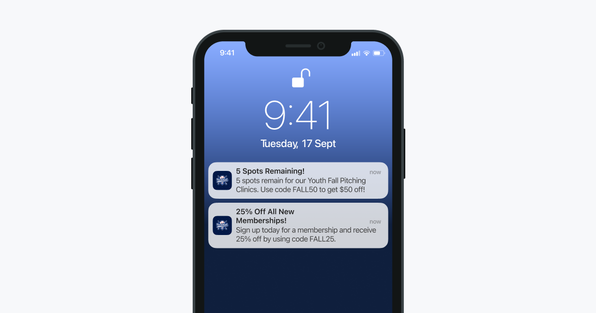 People do not “check email” like they used to, especially for local updates like the sports facility down the street. Push notifications show up on the device in real time, without asking someone to open an inbox, search, or scroll.
