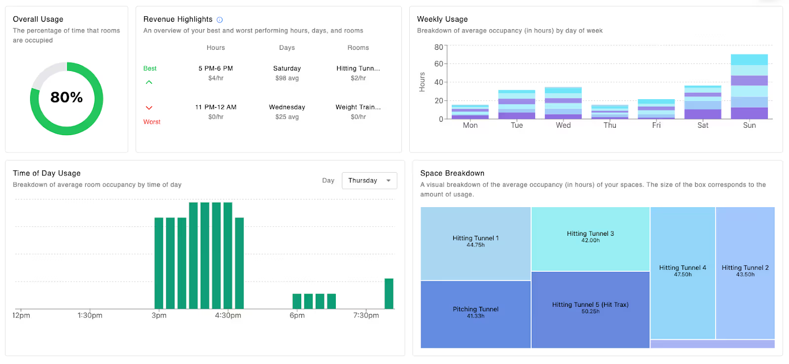 These insights help you adjust pricing, add programs, and maximize every available hour.